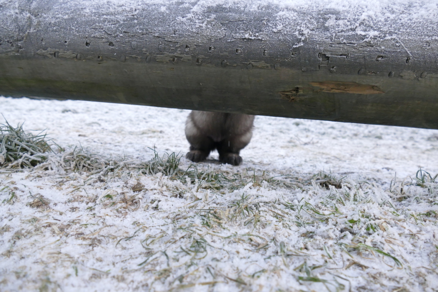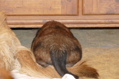 Abby erwartet Mitte April Welpen und baut schon mal an der Wurfhöhle.