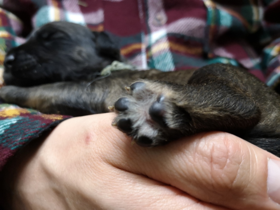 Einen Welpen konnten wir mit nach Hause nehmen. Leider verstarb er am nächsten Tag.