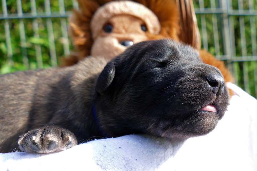 Am 15. Feburar 2010 hat Giany 13 Welpen geworfen, 6 Jungs und 7 Mädchen, nach Unkas Löwe vom Osning.